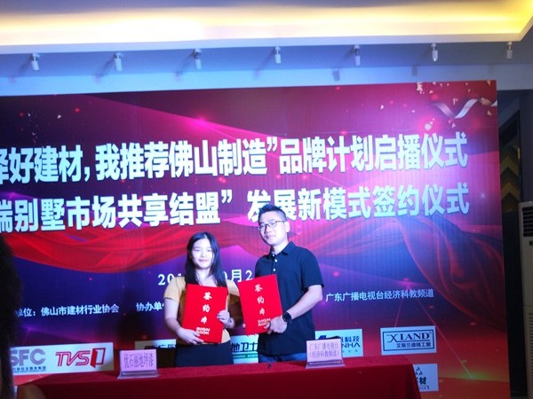 2019年10月25日,“選擇好建材,我推薦佛山制造”品牌計劃啟播儀式和“高端別墅市場共享結盟”發展新模式簽約儀式,在廣寧廣陶陶瓷有限公司佛山瓷海交易中心營銷展廳舉行,并由佛山市建材行業協會舉辦。